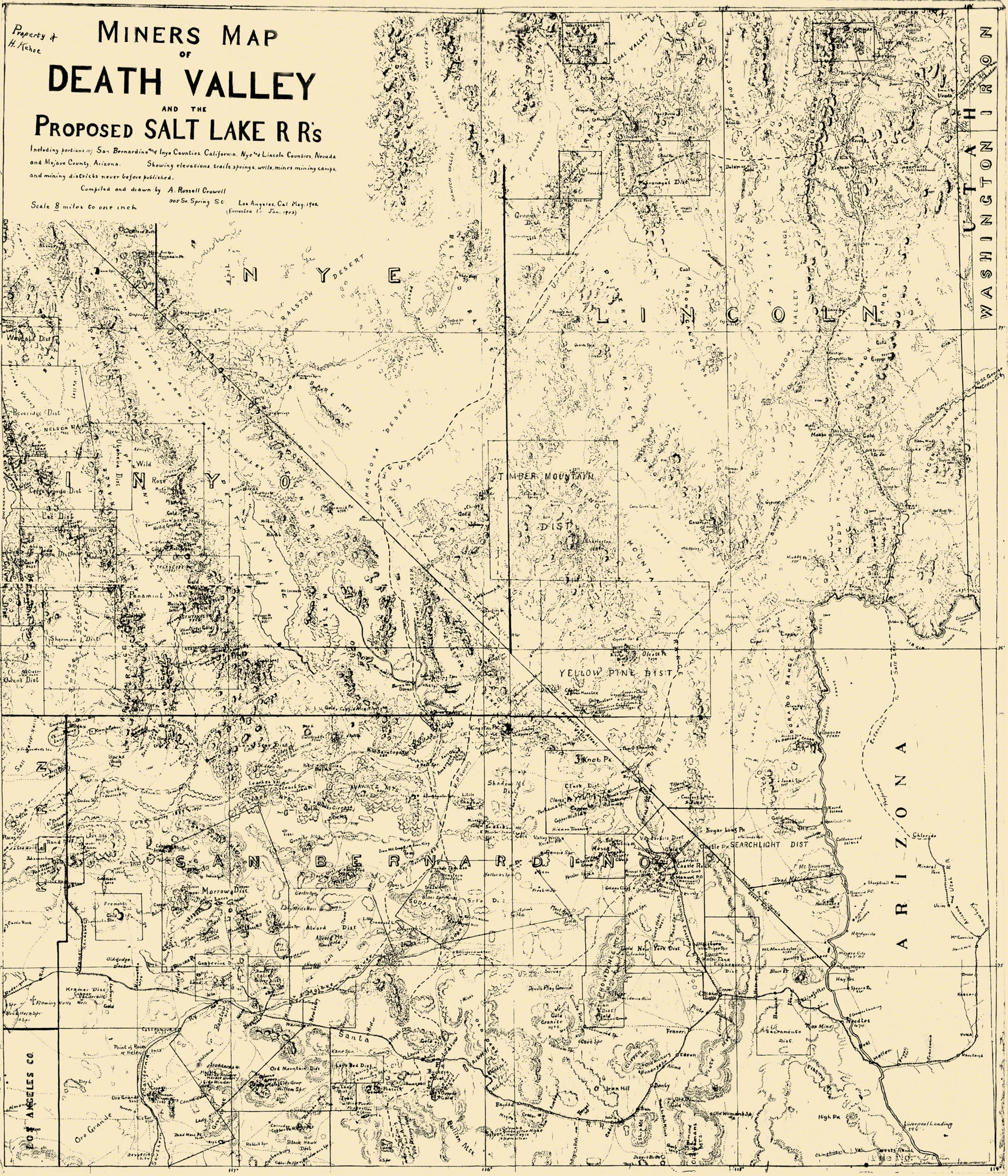 Mine Map Death Valley Miner Salt Lake Railroad Crowell 1903 23 X 26 81 Matte Canvas Walmart Com